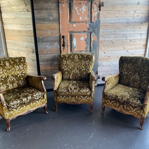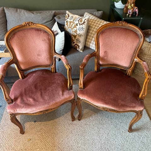 3 fint brukte retro lenestoler i velur til salgs 500,- pr. stk.