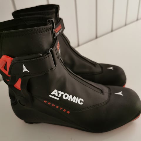 Atomic Redster Jr. skisko for junior, størrelse 40 2/3 (EU), tilsvarende 7.5 (USA) og 25.5 cm (JP). Skistøvlene er av type kombi designet for både skøyting og klassisk. Lette og fine, kjøpt nye på Oslo Sportslager av oss.