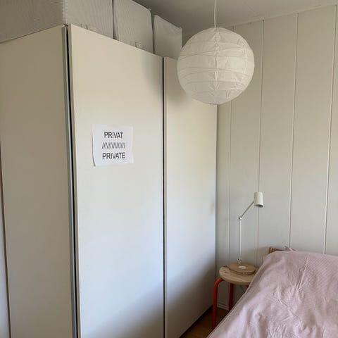 Delvis demontert skyvedørsgarderobe fra ikea med kurver og stang til kleshenger i begge skap og hasvik skyvedører. Dersom mer demontering trengs må kjøper gjøre dette.