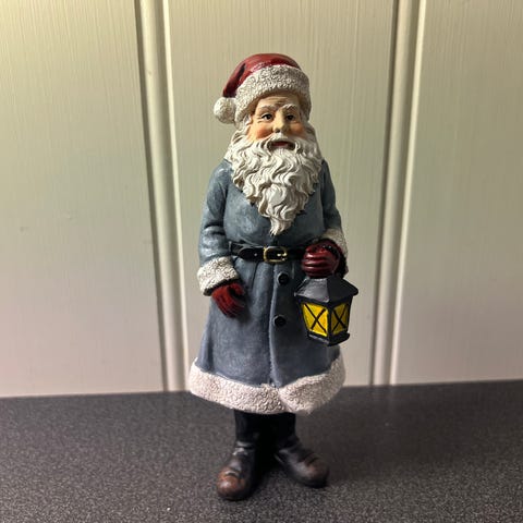 Julenisse med høy nisselue selges. H: 10 cm., B: 5 cm., D: 4 cm. Sender ikke, må hentes.