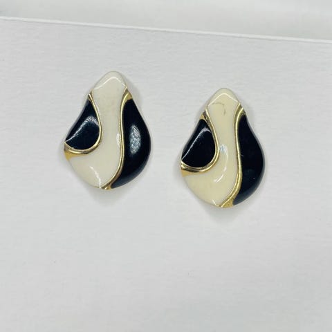 Dame øredobber i gull/svart. Øredobbene har et rund formet design.