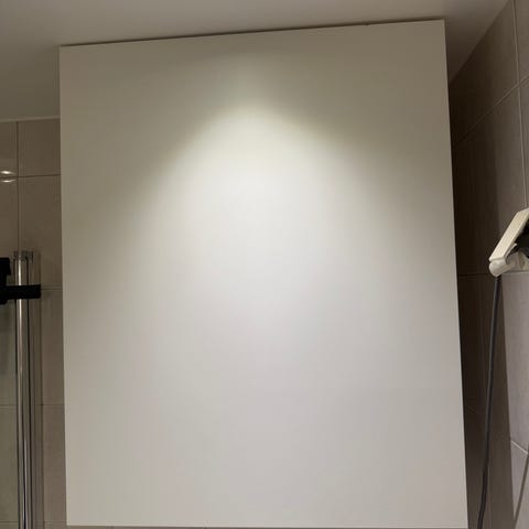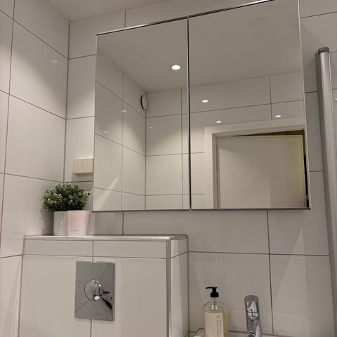 Veggskap til bad, hvit melanin, hyller inni, 2 dører med stålhåndtak. Flyttbare hyller