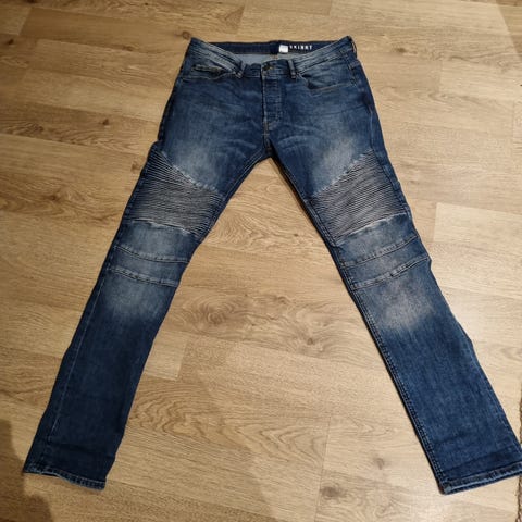 Lite brukt skinney jeans fra HM i str 33, herre modell. Ingen bruksmerker eller skader. Størrelse midje: 96 cm Lengde ben, innside lår: 82 cm.
