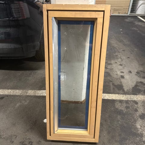 Vinduet har vært montert inne i en leilighet og har ikke vært utsatt for vær eller vind. Det er litt fugemasse rundt kanten, men dette er bare til å dra av.