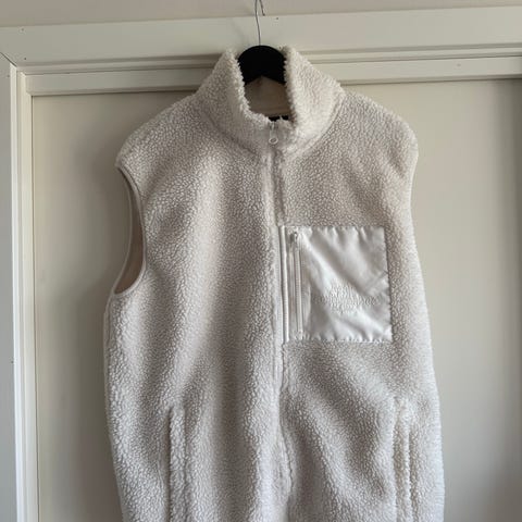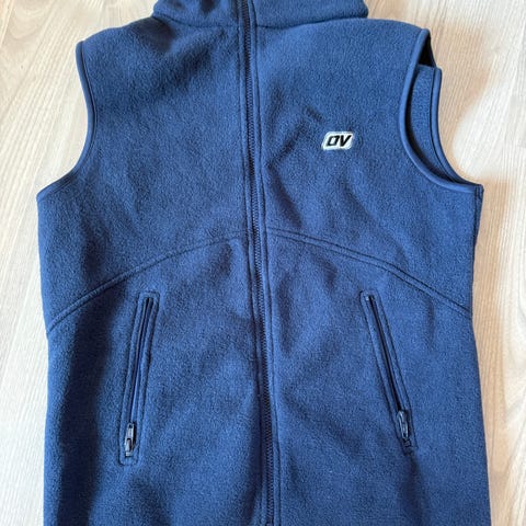 Fleecevest i størrelse 18 år. Brystvidde ca. 120 cm, lengdemål 75 cm målt midt bak.