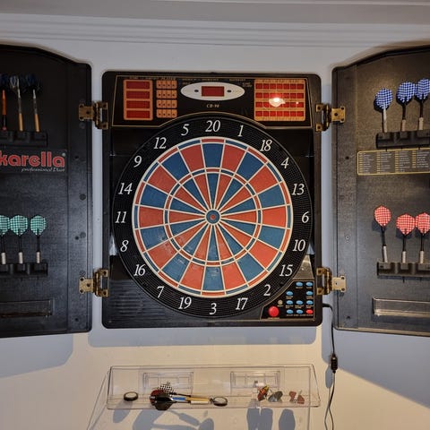 Et lite og pent brukt elektronisk dart kjøpt april -25 selges. Ingen skader og fungerer helt fint.