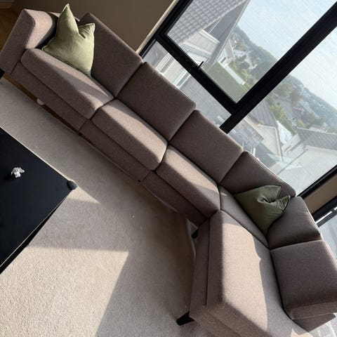 Thanos hjørnesofa fra fagmøbler kjøpt i 2022. Består av 4 moduler+armlene på ene siden.