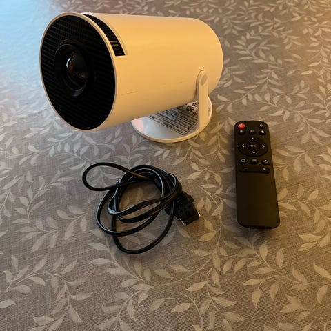 Mini bærbar projektor, liten nok til å legge i vesken eller ryggsekken. Allsidig og bærbar, utmerket valg for familieunderholdning og utendørs camping.
