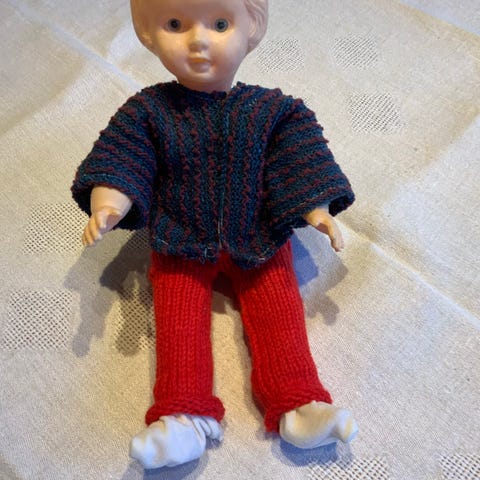 Fin dukke fra 1950- tallet. Tynn plast , 37 centimeter høy. Ingen bruksslitasje. Klærne er ikke originale .