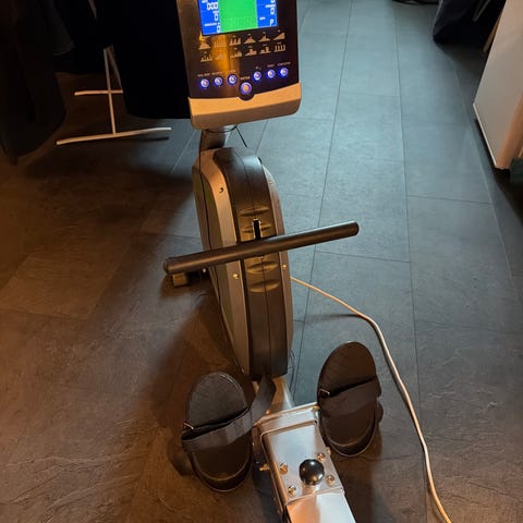 Titan Life S Line 500 romaskin, digital skjerm og fotstropper. Maskinen har en robust ramme og er designet for innendørs trening.