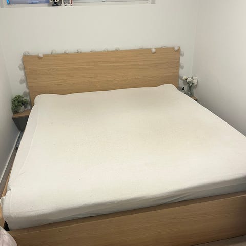 Denne sengen er kjøpt på Tradmax husker ikke helt navn hva den heter men veldig god seng å ligge i å den er veldig stor er på 210×210 svart. Eneste som ikke følger med er den sengegavelen men den kan kjøpes selv på tradmax. Selges pågrunn av flytting.