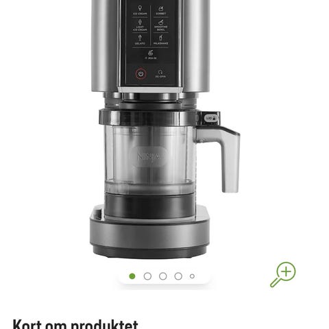 Ninja kaffetrakter med tilhørende beholdere og lokk. Maskinen har flere funksjonsknapper for brygging av kaffe. Tilbehøret inkluderer plastbeholdere med lokk for oppbevaring.