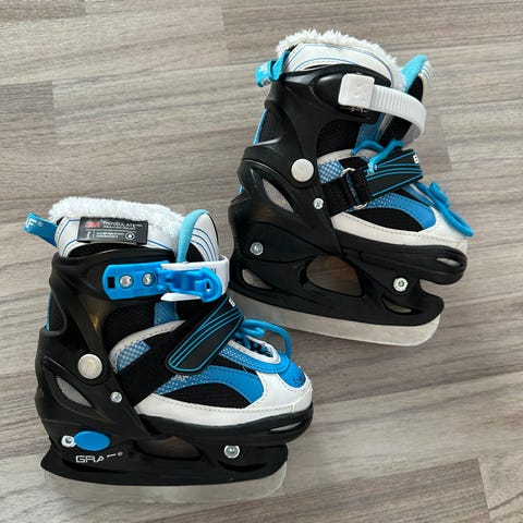 Graf skøyter barn størrelse 25 -28 i fargene hvit og lilla. Skøytene er designet for barn og har justerbare stropper for god passform. Egnet for bruk på isflater til skøyteaktiviteter.