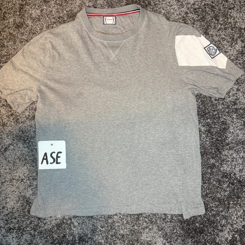 Fet T shirt med stor moncler logo brodert, denne modellen er utgått og vanskelig å få tak på. Kan sendes.