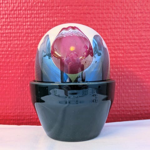 Arabia Esteri Tomula vase med linneamotiv i rosa og grønt. Vasen er laget i porselen og er 14 cm høy, diameter er 7,7 cm.