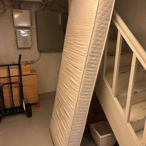150x200 rammemadrass med ben gis bort mot snarlig henting. Medfølger ikke overmadrass.