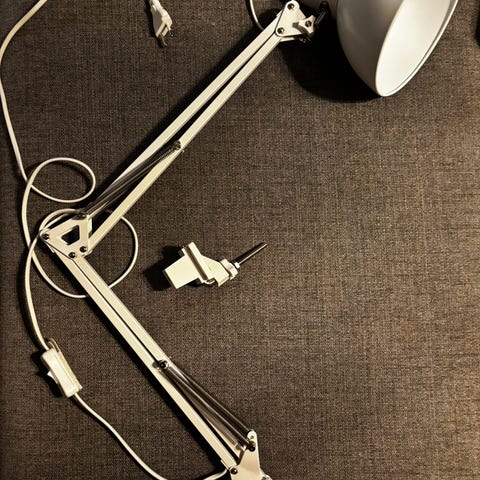 Sort skrivebordslampe fra IKEA. Fungerer helt fint. https://www.ikea.com/no/no/p/skurup-arbeids-vegglampe-svart-20471141/