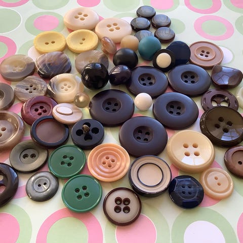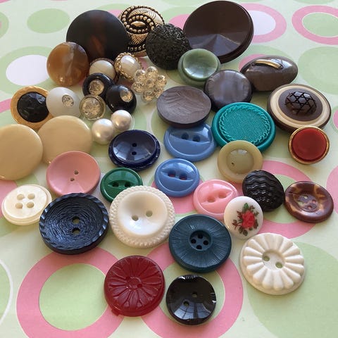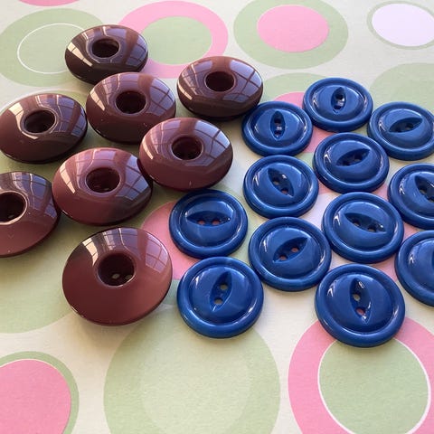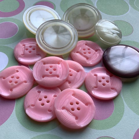 Blandet lot med knapper av lett plast. Passer til ulike sy- og hobbyprosjekter.
