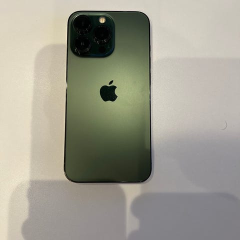 Apple iPhone 13 Pro mobiltelefon med 128 GB lagringskapasitet. Enheten har en skjerm med høy oppløsning og dobbel kameraoppsett på baksiden. Telefonen har en batterikapasitet på 100 % og støtter optimalisert batterilading.