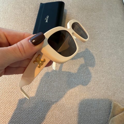 Chanel solbriller med perlepynt på stengene og medfølgende svart original Chanel etui.
