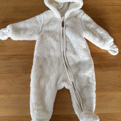 Søt hvit bjørne dress i størrelse 62 (2-4 måneder). Myk og god og holder godt varmen.