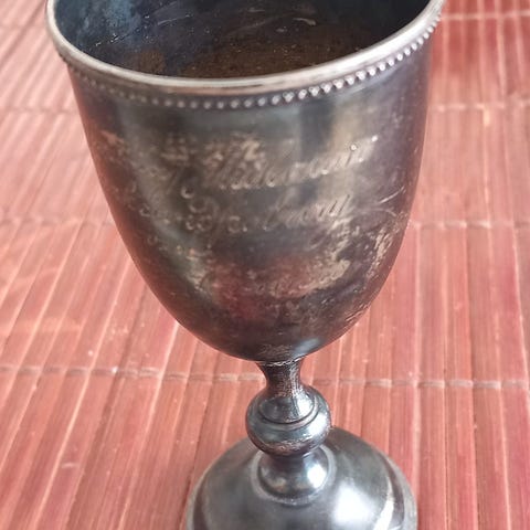 Selger sølvkopp / dåpskopp fra ca 1900. Sølvstemplet "800". Ubrukt og uten navnegravering. Sølvbegeret ble med vilje ikke polert!