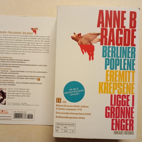 Fire innbundne bøker av Anne B. Ragde om familien Neshovd , hovedsakelig på slektsgården på Byneset utenfor Trondheim: Berlinerpoplene (2004), Eremittkrepsene (2005), Ligge i grønne enger (2007) og Datteren (2019). Anne B. Ragde har vunnet mange priser.