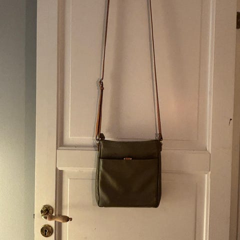 Italiensk skulderveske fra GG Fratelli i ekte, mykt skinn. Praktisk crossbody-modell med klaff, flere rom og glidelåslommer. Justerbar skulderrem. Pent brukt med normal bruksslitasje, mye bruk igjen. Klassisk og tidløs veske.