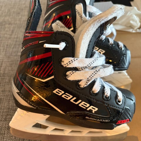 Bauer ishockeyskøyter for barn i størrelse 35. Skøytene er designet for ishockey og har snøring for justerbar passform. Fargen er svart med hvite detaljer. Egnet for barn som spiller ishockey.