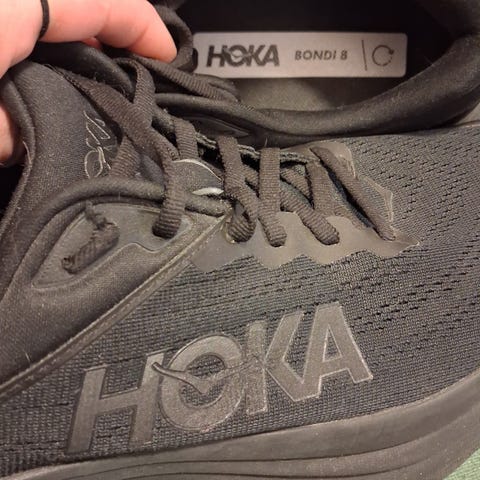 Hoka Sneakers joggesko i størrelse 41 1/3med svart overdel og blå detaljer. Skoene har en slitesterk yttersåle med godt grep, egnet for både løping og hverdagsbruk.