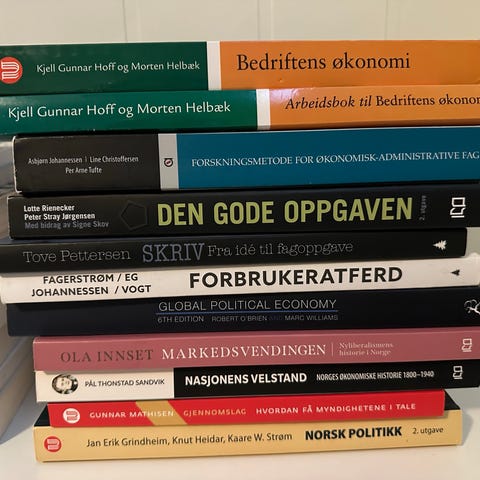 Alle bøkene er i god stand. Noen har enkelte markeringer eller små bøyer/frynser på coveret.