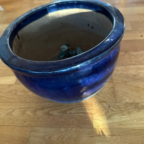 Skeidar blomsterpotte i keramikk med grønn glasur. Potten har en rund form og er egnet for innendørs bruk til dekorasjon eller planting av blomster og planter.