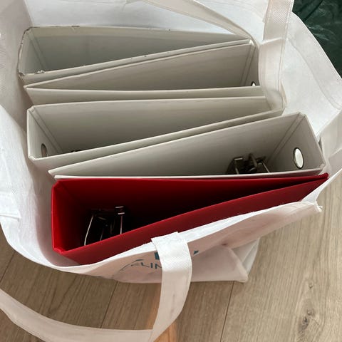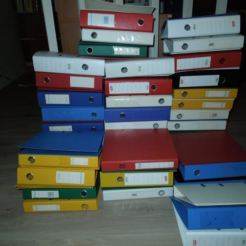 Ca35 stk. kun brukt for lagring så nesten alle permene er som nye. Klare til å hentes i søppelsekk