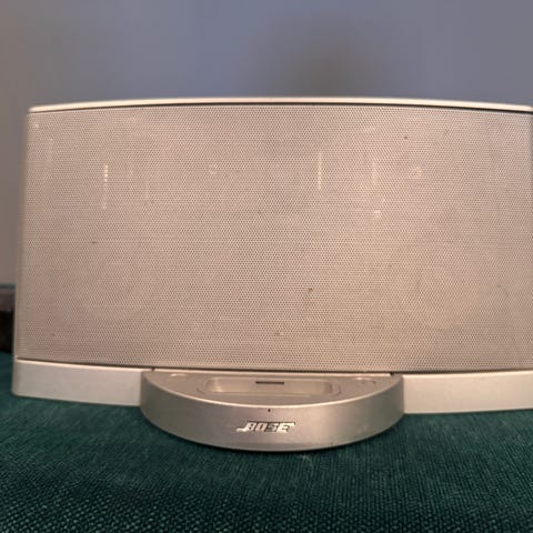 Bose SoundLink Mini Bluetooth-høyttaler i svart farge. Kompakt bærbar høyttaler med trådløs tilkobling via Bluetooth. Har kontroller for av/på, volum og AUX-inngang.