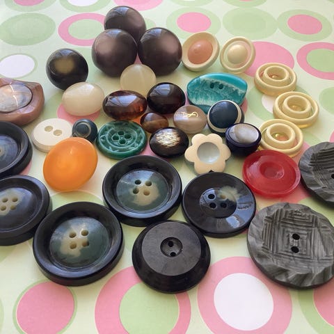 Blandet lot med vintage knapper av plast. Passer til ulike sy- og hobbyprosjekter.