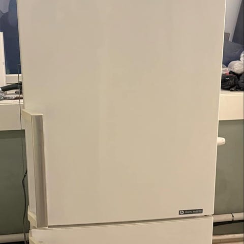 Samsung kombiskap. Hvitt kjøleskap med fryser i bunn. Passer for lagring av mat og drikke i hjemmet.