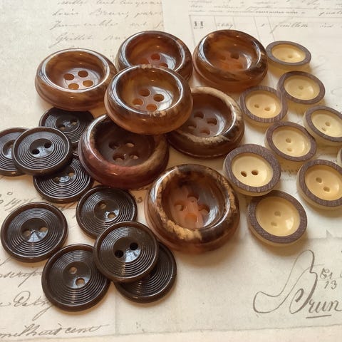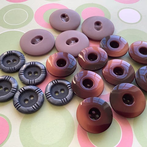 Blandet lot med vintage knapper av plast. Passer til ulike sy- og hobbyprosjekter.