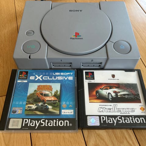 PS2 mangler minnebrikke men har alt ellers. 2 styrekonsoll, 3 mikrofoner (Singstar) div. kabler og flere retro spill inkl. projector til å kjøre spille på veggen...Selges under ett!