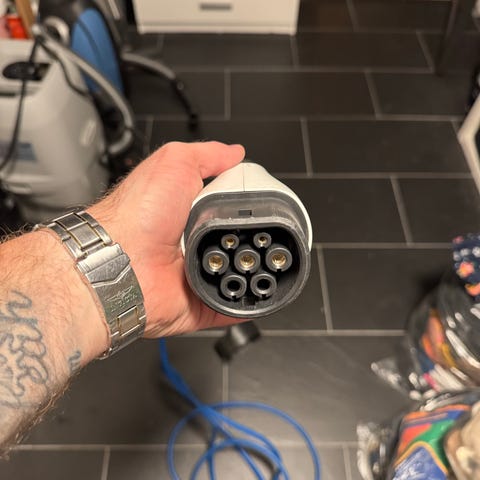 Hyundai type 2 ladekabel for elbil med blå farge. Kabelen har standard kontakter for lading av elektriske kjøretøy. Passer til Hyundai elbiler og andre kompatible modeller.