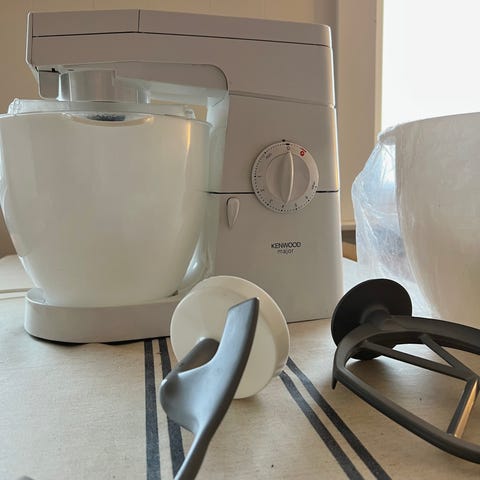 Selger en pent brukt kenwood kjøkkenmaskin rimelig. Kommer med mye ekstra tilbehør som ses på bildet. Bare blender nytt koster rundt 2000krz Mye er ikke brukt, noe 1-2 ganger brukt. Maskinen er i god stand og lager god bakst og annet. Selges rimelig da det mangler 4 knotter nede på maskinen. Blitt brukt her uten knottene da da den tiltet litt med noen av de på, kanskje noen som har ekstra eller vil kjøpe ekstra? Selges derfor billig. Har for øvrig ingenting å si for funksjonen, og når knottene er av merkes ingen tilting, kun kosmetisk mangel.