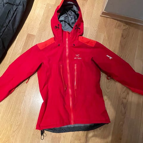 Har en liten flenge nede på høyre side som bør sys eller tapes, pluss et ørlite glohull oppe på brystet.