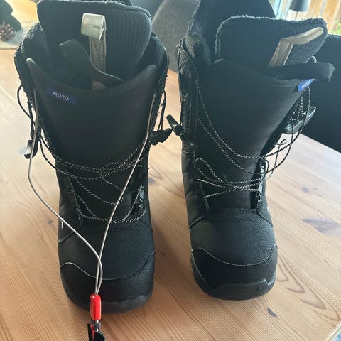 Burton moto snowboardsko i str 44. Kjøpt for 2 år siden nesten nye og har ingen bruksmerker eller skader.