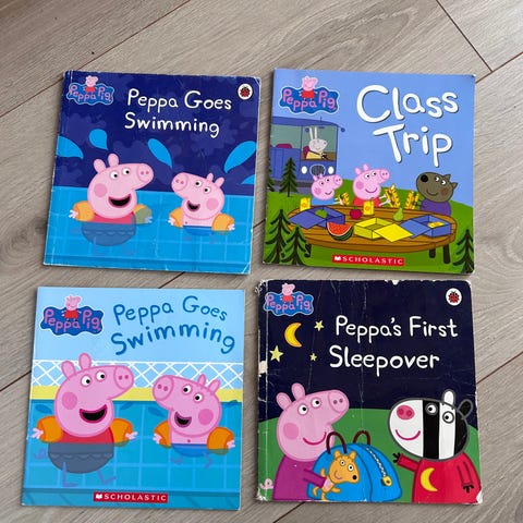 Peppa Pig bok om følelser og Peppa Pig lydbøker for barn. Settet inkluderer en bok om følelser og to lydbøker med knapper for lydavspilling. Passer for små barn som lærer om følelser og språk. Fungerer som de skal med lyd.