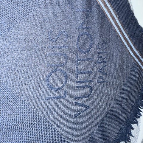 Louis Vuitton Cardiff skjerf i grå farge laget av 75% ull og 25% angoraull. Størrelse one size. Passer til menn og damer.