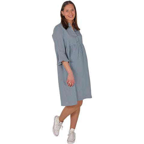 Nydelig skjortekjole fra KO:KO. Løs og ledig passform. 3/4 lange ermer med volanger, og Kina-krage og knappestolpe foran. Lommer på hver side. Nydelig sval på varme dager. En supersøt sommerkjole som er like fin til sandaler som sneakers!
