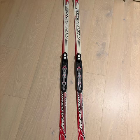 Madshus smørefrie langrennsski med tilhørende bindinger. Race light 130 cm