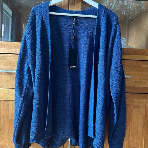 Mørkeblå Jena button cardigan i str XL. Brukt kun noen få ganger. Nylon/viskose-blanding. Ny pris 1599kr.