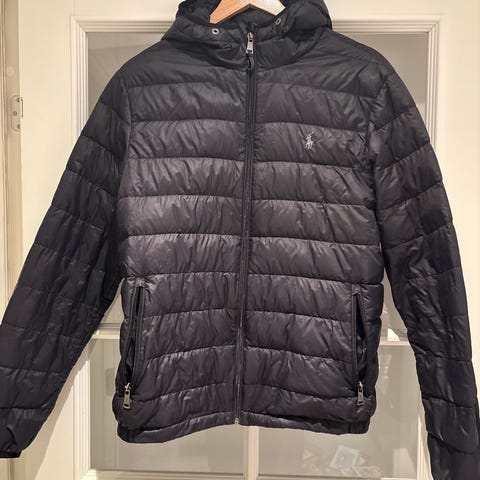 Ralph Lauren M hettejakke i svart farge laget av bomull. Jakken har glidelås og hette, og er designet for menn.