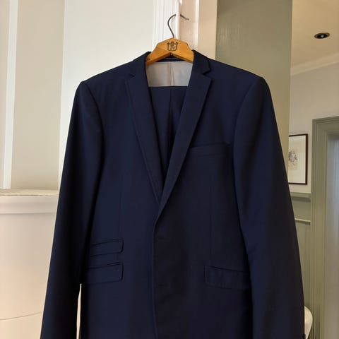 Tiger of Sweden Edvin 3 dress i blå farge. Vevd i tett ull som gir dressen en tett, lekker overflate. Jakken og buksen er størrelse 50 og har et klassisk design egnet for formelle anledninger. Brukt et fåtall ganger.