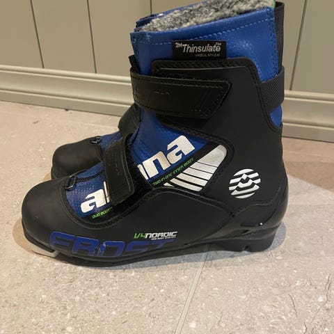 Alpina Frost langrennsstøvler i størrelse 34. Støvlene har rosa og lilla farger, med Thinsulate isolasjon for varme.